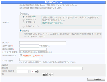 HOME < 転送/購入代行サービス < 転送依頼 < 転送依頼方法